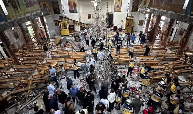 Suriye İçişleri Bakanlığı'ndan saldırıya ilişkin açıklama geldi. Bakanlık, saldırının DAEŞ tarafından gerçekleştirildiğini bildirdi.İşte yerle bir olan kiliseden görüntüler: